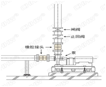 一、請參照下邊的安裝圖例,將撓性單球體橡膠接頭安裝到水泵系統時,如果止回閥位于撓性單球體橡膠接頭之下安裝,那么泵啟動和停止時形成的水壓和水錘效應都將對橡膠接頭產生不良影響。