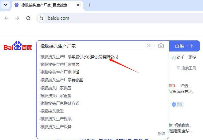 通過搜索引擎(如百度、搜狗、360、bing、國外谷歌等,天眼查、企查查等)輸入關鍵詞“橡膠接頭生產廠家”,可以找到許多相關的生產廠家。例如,搜索結果中提到了一些知名的橡膠接頭生產廠家,如下圖展示的結果:橡膠接頭生產廠家華威供水設備股份有限公司。