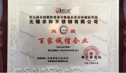 無錫求和不銹鋼有限公司是專業代理多家國內外不銹鋼廠的各種不銹鋼板材,在不銹鋼行業享有很大的知名度且具有行業影響力的一級代理商,尤其是特種不銹鋼的經銷和進出口貿易。連續幾年被評為“中國不銹鋼流通企業AAAAA(高級)級優秀企業”、 “百家誠信企業”、“無錫市3A級重合同守信用企業”,“中國不銹鋼行業貿易量前十名”。